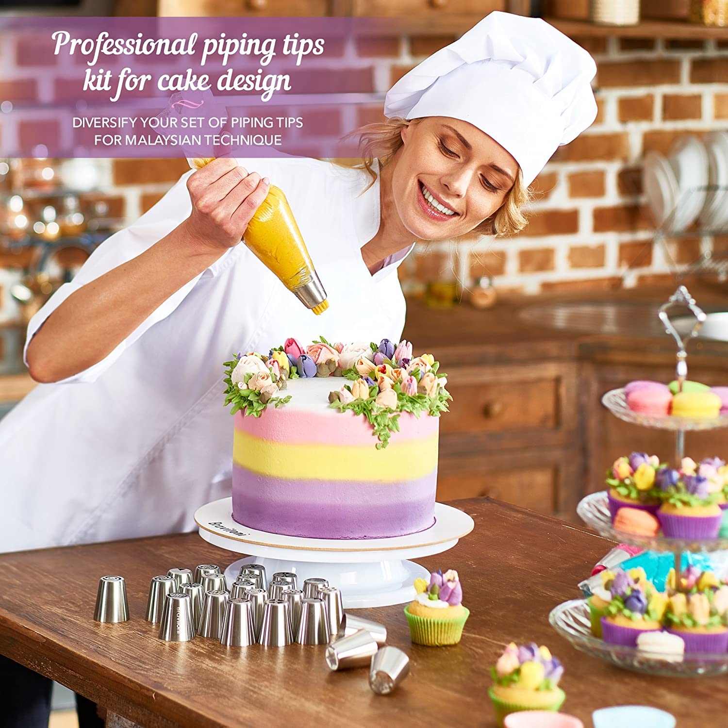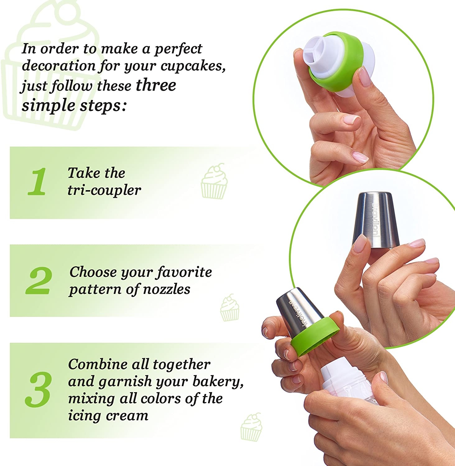 Silicone bag, stainless steel nozzles and each separately packed, plastic tip with three triangles for different cream, does not smell, carving is dense. Left cake to make))